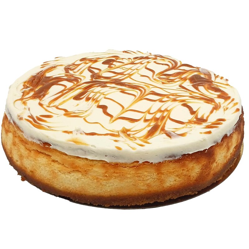 Our scrummy Salted Caramel Cheesecake is made with soft cream cheese mixed with salted caramel, on a buttery biscuit base and topped with a caramel swirl design. An eye catching cake!